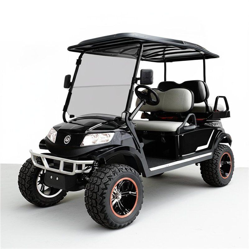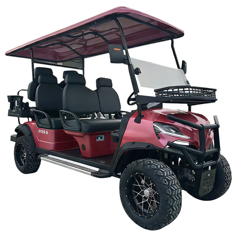 This 6-seater off-road electric golf cart is designed for both comfort and performance. Featuring a lifted suspension, rugged all-terrain tires, and a powerful electric drive system, it delivers a smooth and stable ride on various terrains—from resort pathways to hilly landscapes.